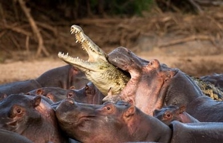 This croc however found something rather more challenging than a wheelchair maniac racing towards him. After the mosquito (and man!) these are the probably the two most dangerous animals in Africa. This time the croc came off second best ...